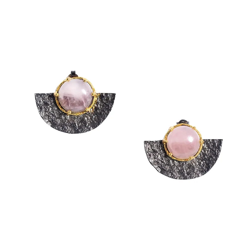 $350.00<p>Sterling silver 925 earrings with PINK quartz gemstones oxidized and gold plated </p>