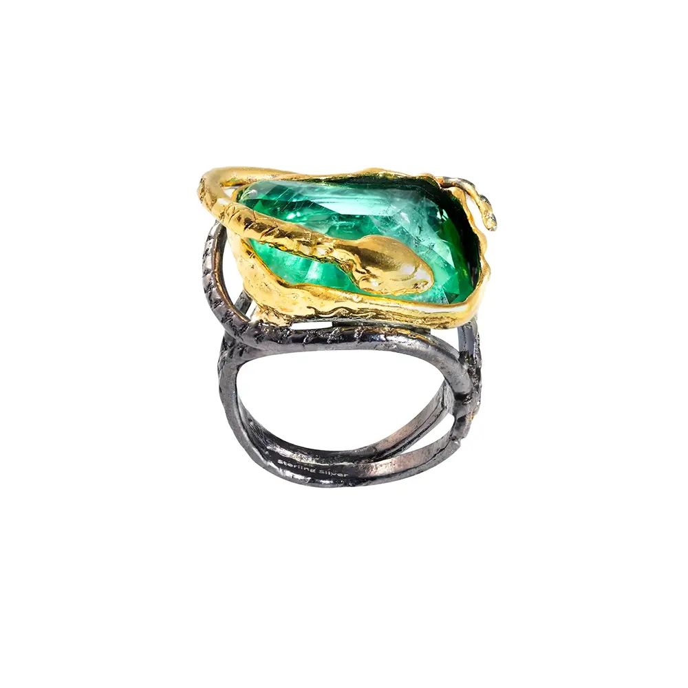 $390.00<p>Sterling silver 925 ring with green quartz gemstone oxidized and gold plated </p>