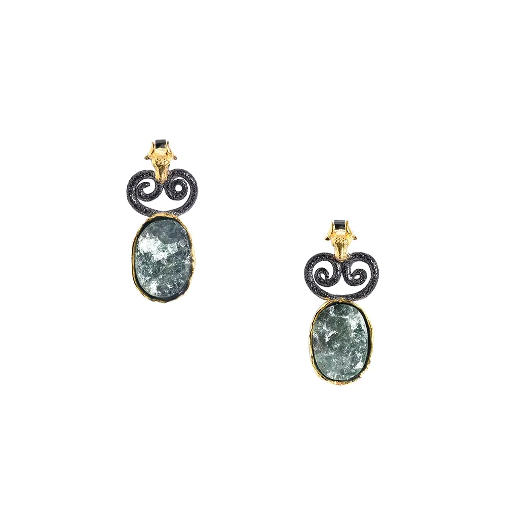 $390.00<p>Sterling silver 925 earrings with Prehnite gemstones oxidized and gold plated </p>