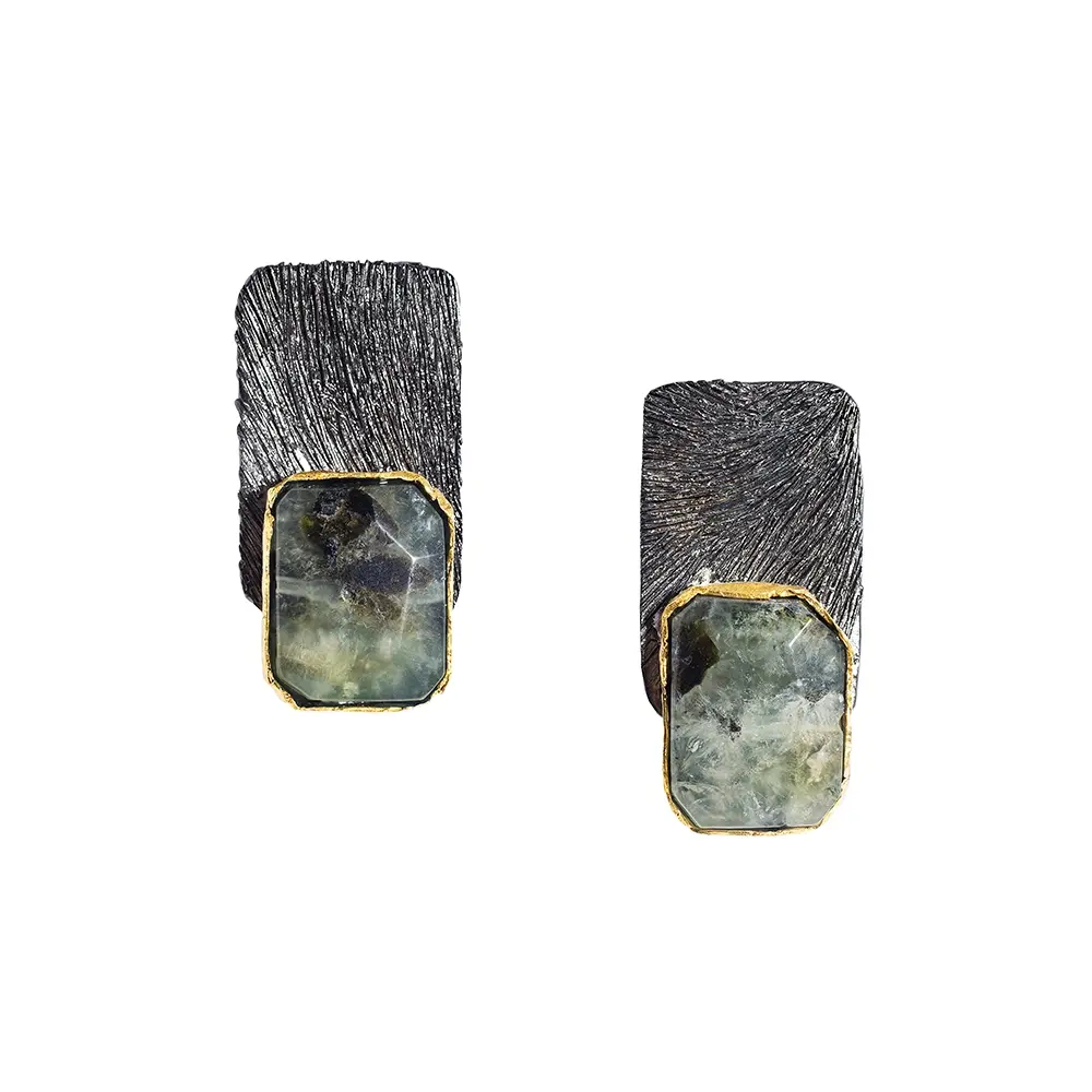 $490.00<p>Sterling silver 925 earrings with Prehnite gemstones oxidized and gold plated </p>