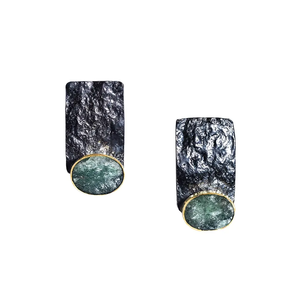 $460.00<p>Sterling silver 925 earrings with jade gemstones oxidized and gold plated </p>