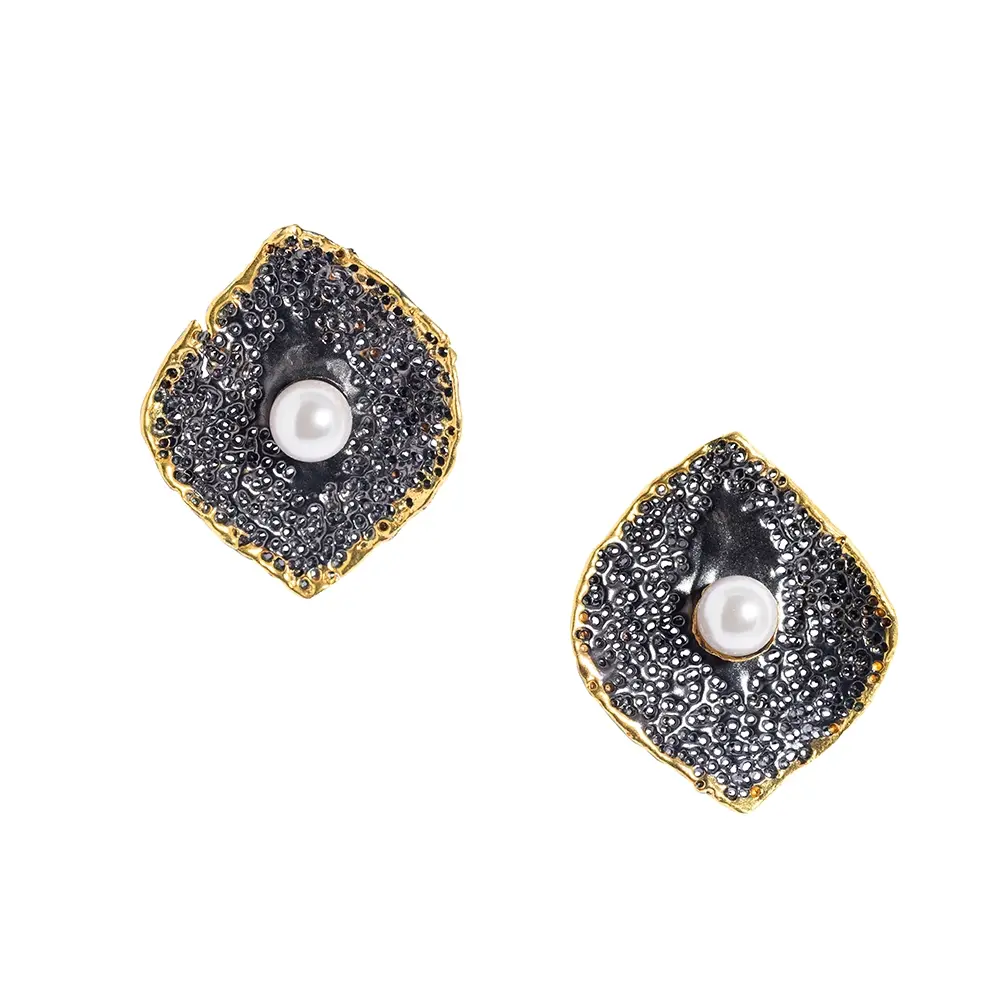 $310.00<p>Sterling silver 925 earrings with pearl gemstones oxidized and gold plated </p>
